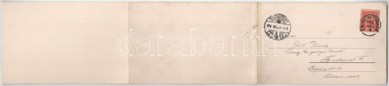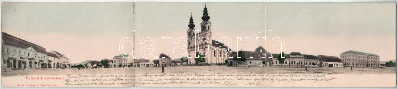 1904 Erzsébetváros, Dumbraveni; Fő tér, Marton György, Balogh Károly, Szentpétery K. üzlete, templom. Scholtes A. kiadása. 3-részes kihajtható panorámalap / main square, shops, church. 3-tiled folding panoramacard (r)