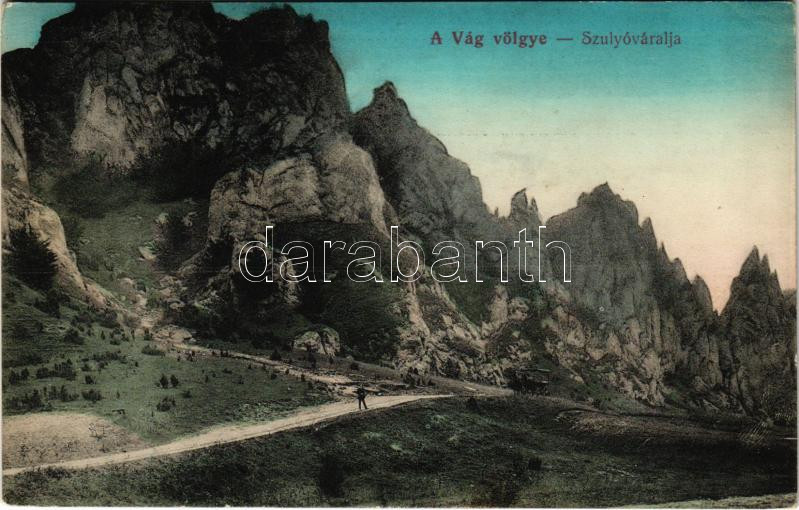 Szulyóváralja, Szulyó, Súlov-Hradná; Szulyó vár és váralja, Vág völgye. Kemény József kiadása / Povazie, Súlovsky hrad / Váh Valley, castle ruins (ázott sarok / wet corner)