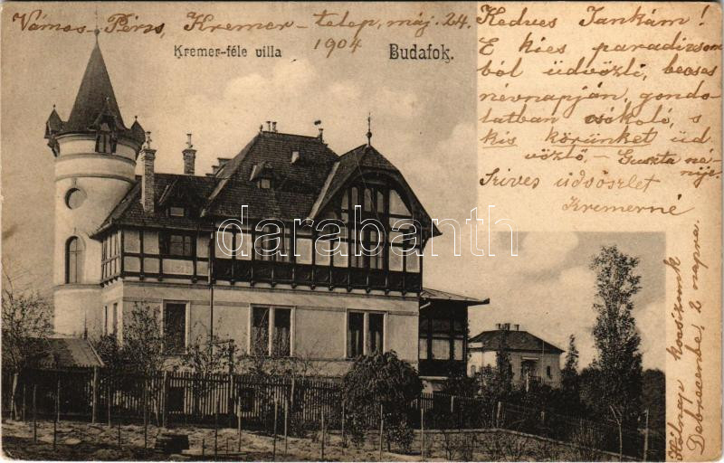 1904 Budapest XXII. Budafok, Kremer-féle villa. Kremerné levele (EK)