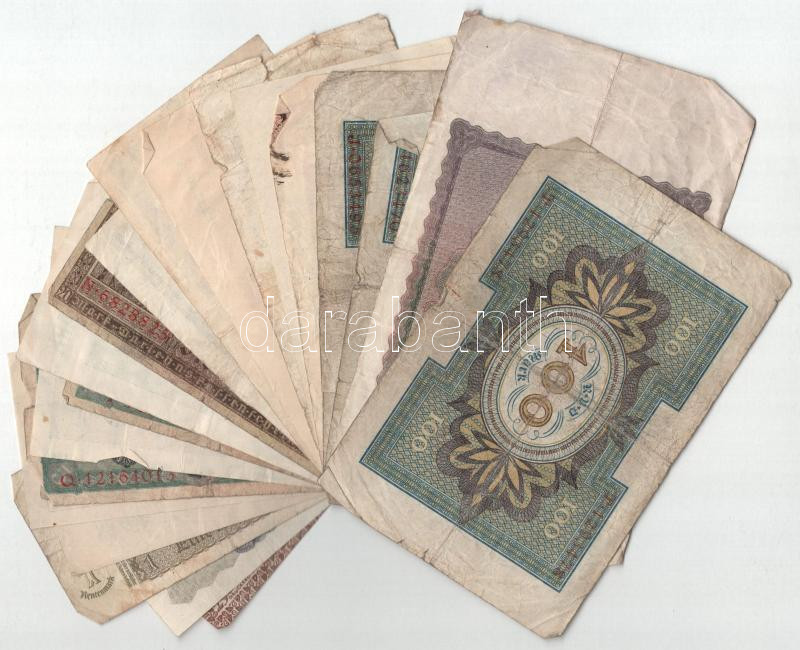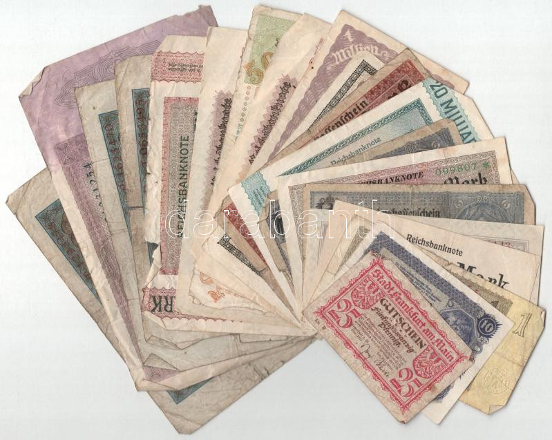 Németország 1918-1937. 20db vegyes német bankjegy és szükségpénz főleg nagy címlettel, közte Ausztria 1922. 10K, közte Németország / Weimari Köztársaság 1923. 10.000.000.000M T:F-G