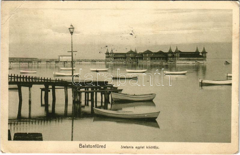1910 Balatonfüred, Stefánia egylet kikötője, fürdő, csónakok (EK) https://www.darabanth.com/hu/455-Gyorsarveres/455.0/Kepeslapok/Magyarorszag~1500005/1910-Balatonfured-Stefania-egylet-kikotoje-furdo-csonakok-EK~II3034790