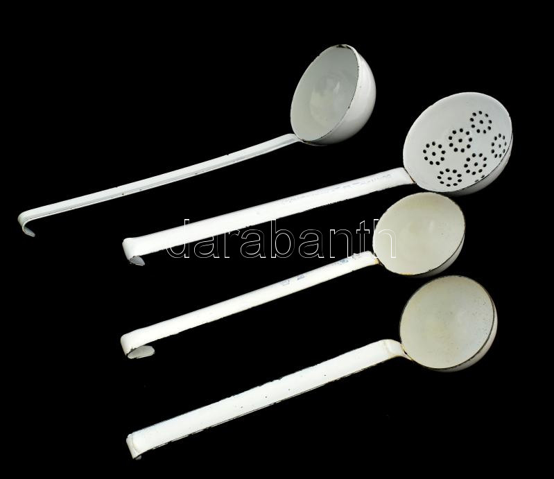 4 darab antik zománcozott merőkanál, közte Bonyhád