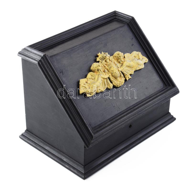 Puttós díszítéssel fa irattartó doboz, kopással, kulcs nélkül, 28x19x2... https://www.darabanth.com/hu/455-Gyorsarveres/455.0/Mutargy-papirregiseg-egyeb/Mutargyak-antikvitas~500008/Puttos-diszitessel-fa-irattarto-doboz-kopassal-kulcs-nelkul-28x19x21-cm~II3037484