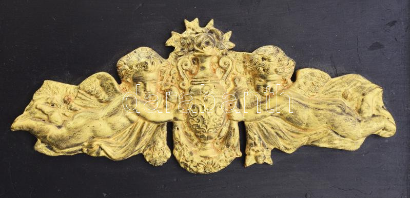 Leírás: Puttós díszítéssel fa irattartó doboz, kopással, kulcs nélkül, 28x19x21 cm