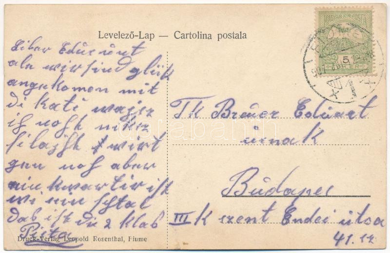 1907 Cunard Magyar-Amerikai vonal a Pannónia kivándorlási hajó Fiume kikötőjében. Leopold Rosenthal kiadása / Piroscafo Ung. Croata Pannonia / Cunard Hungarian-American Line. Emigration ship Cunard Line RMS Pannonia in Rijeka (EK)