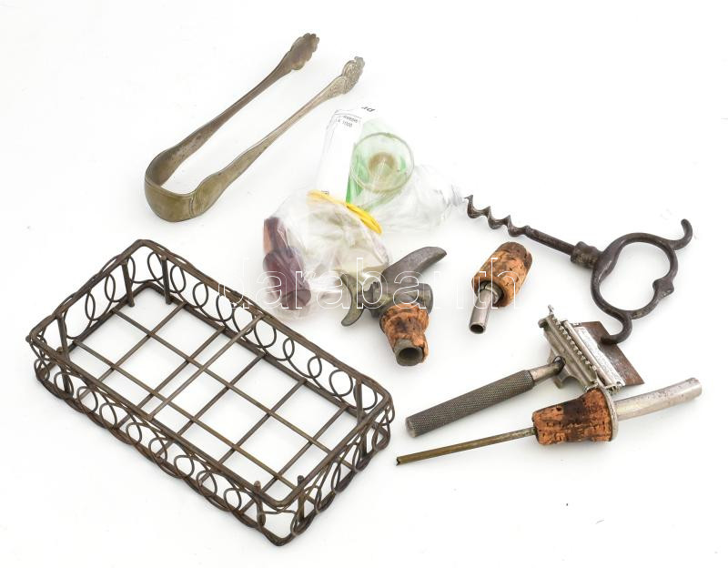 Leírás: Vegyes bolhapiac tétel: tálka, dugó, cukorfogó, stb, vegyes állapotban