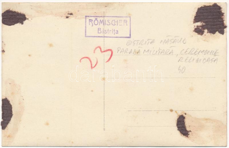 Beszterce, Bistritz, Bistrita; román katonai ünnepség / Romanian military parade. photo (ragasztónyom / glue marks)