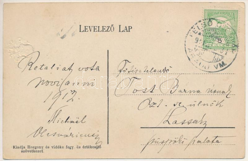 Leírás: 1912 Rozgony, Rozhanovce (Kassa, Kosice); kastély, kúria. Fogyasztási szövetkezet kiadása / castle (EK)