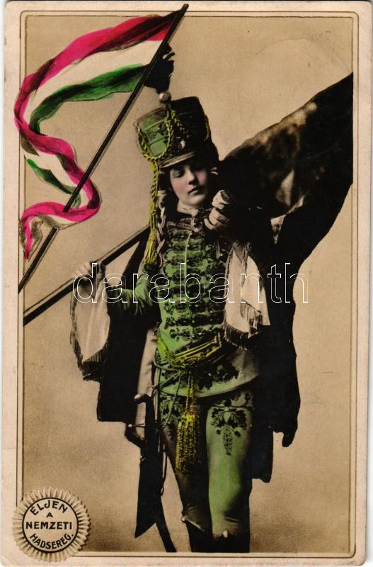 1906 Éljen a Nemzeti Hadsereg! Hölgy katonai egyenruhában magyar zászl... https://www.darabanth.com/hu/459-Gyorsarveres/459.0/Kepeslapok/Katonai~1500041/1906-Eljen-a-Nemzeti-Hadsereg-Holgy-katonai-egyenruhaban-magyar-zaszloval-Lady-in-Kuk~II3074696