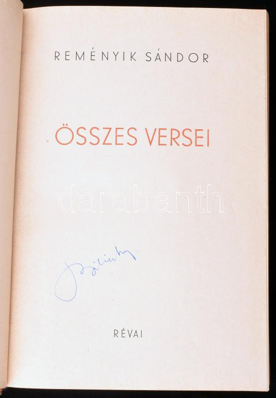 Reményik Sándor összes versei. Bp., 1941, Révai. Első kiadás. Kiadói i... https://www.darabanth.com/hu/459-Gyorsarveres/459.0/Konyvek/Konyvek-Egyeb-ritkasagok~2000015/Remenyik-Sandor-osszes-versei-Bp-1941-Revai-Elso-kiadas-Kiadoi-illusztralt-felvaszon-kotes~II3078285