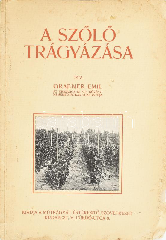 Grabner Emil: A szőlő trágyázása. Bp., 1911, Műtrágyát Értékesítő Szöv... https://www.darabanth.com/hu/459-Gyorsarveres/459.0/Konyvek/Konyvek-Konyha-es-kert~2000023/Grabner-Emil-A-szolo-tragyazasa-Bp-1911-Mutragyat-Ertekesito-Szovetkezet-Hornyanszky-ny-~II3077816