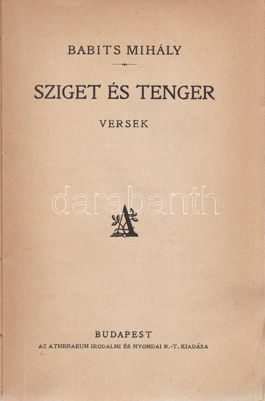 Babits Mihály: Sziget és tenger. Versek. Budapest, [1925]. Athenaeum...