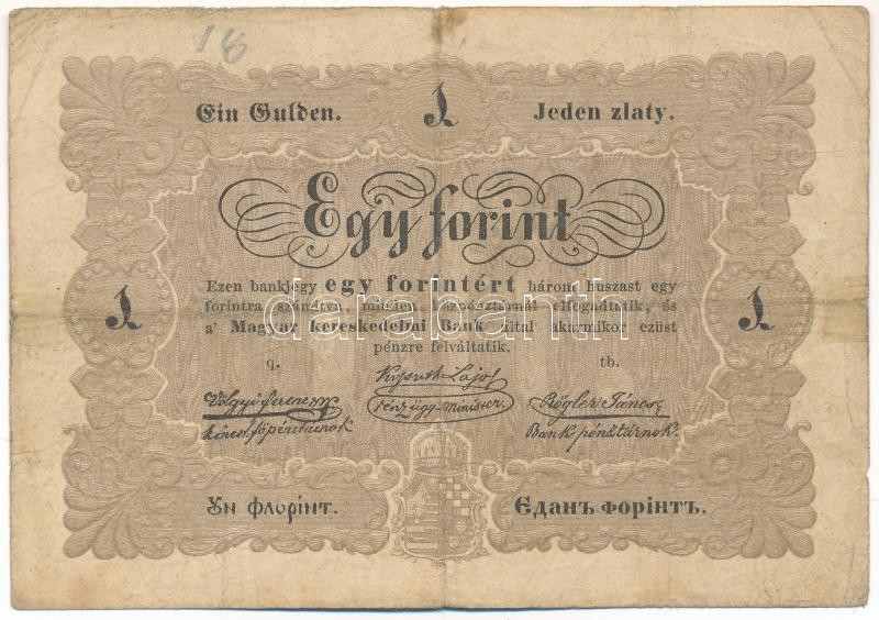 1848. 1Ft "Kossuth bankó" T:VG folt, ragasztónyom Adamo G104 https://www.darabanth.com/hu/469-Gyorsarveres/469.0/Numizmatika/Magyar-bankjegyek~2000008/1848-1Ft-Kossuth-banko-TVG-folt-ragasztonyom-Adamo-G104~II3172449