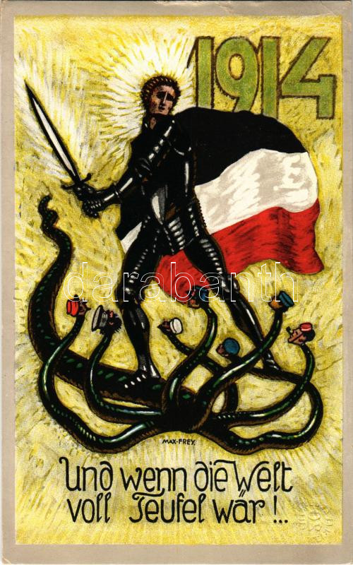 Leírás: Und wenn die Welt voll Teufel wär!... 1914 / WWI German military propaganda. Stengel s: Max Frey (r)