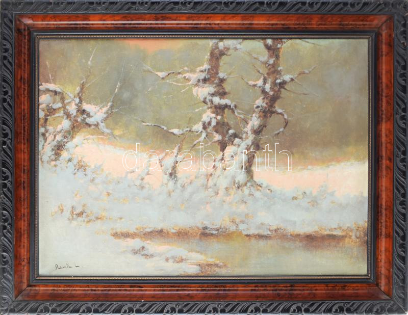 Pántl László (1943-): Téli táj. Olaj, vászon, jelzett. Dekoratív faker... https://www.darabanth.com/hu/479-Gyorsarveres/479.0/Festmenyek-es-grafikak/Festmenyek-es-grafikak~500026/Pantl-Laszlo-1943-Teli-taj-Olaj-vaszon-jelzett-Dekorativ-fakeretben-50x70-cm~II3263915