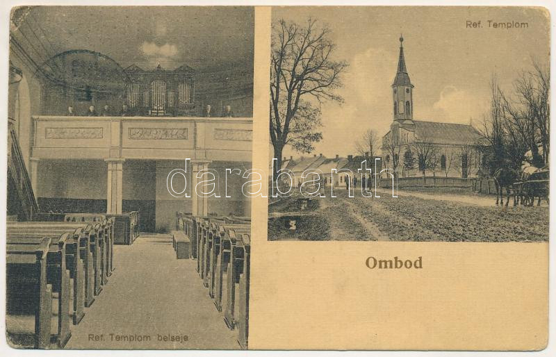 Leírás: Ombod, Ambud; Református templom, belső. Szabó Lajos kiadása / Calvinist church, interior (EK)