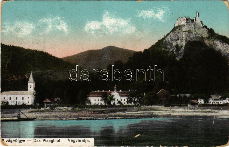 1912 Vágváralja, Vág-Podhragy, Povazské Podhradie (Vágbeszterce, Povazská Bystrica); Podrágyvár, templom, kastély, Vágvölgy. Gansel Lipót 516 / castle, church in Váh Valley / Povazie, Povazsky hrad