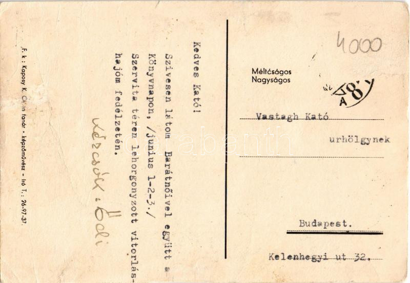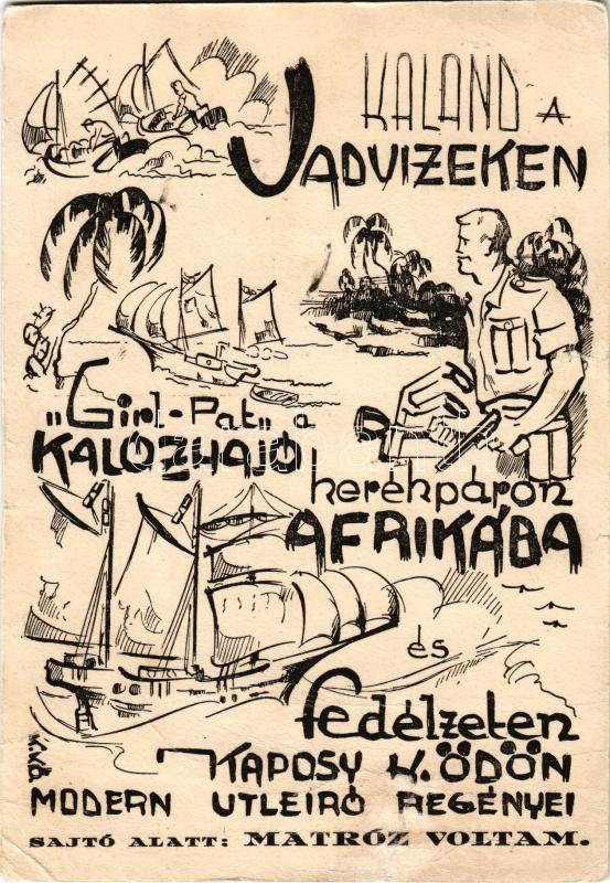 1942 Kaposy K. Ödön modern útleíró regényei: Kaland a vadvizeken, "Girl-Pat" a kalózhajó, Kerékpáron Afrikában, Fedélzeten. Sajtó alatt: Matróz voltam - reklám a képzőművész saját rajzával s: K. K. Ö. (Rb)
