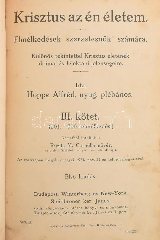 Hoppe Alfréd: Krisztus az én életem. III. kötet. Bp.-Winterberg-New Yo...