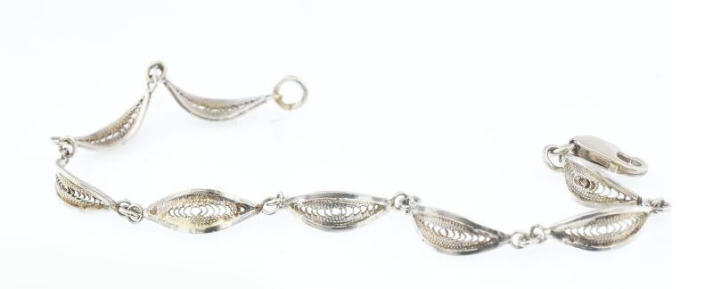 Ezüst (Ag) filigrán hajlított glídes karkötő, jelzett, h: 17 cm, nettó... https://www.darabanth.com/hu/479-Gyorsarveres/479.0/Nemesfem-disztargyak-ekszerek-dragakovek/Nemesfem-disztargyak-ekszerek-dragakovek~1000039/Ezust-Ag-filigran-hajlitott-glides-karkoto-jelzett-h-17-cm-netto-3-9-g~II3268887