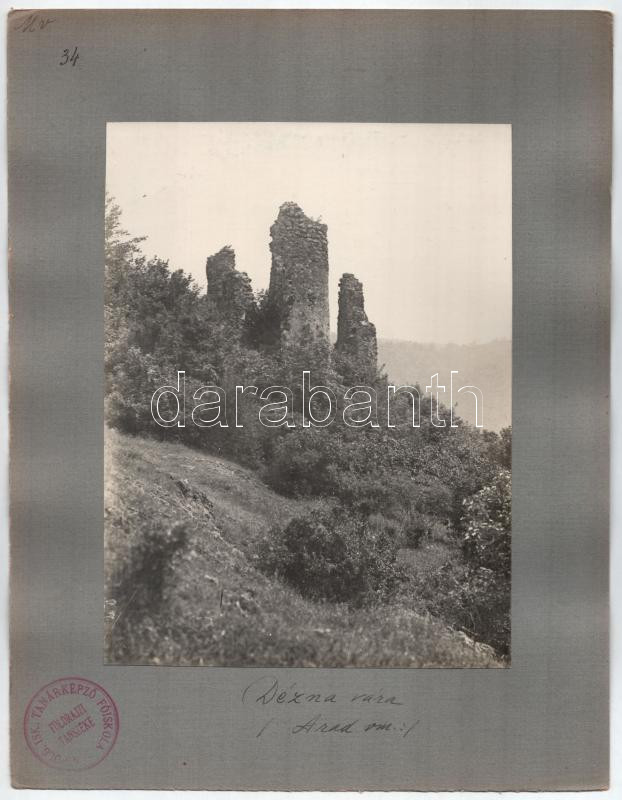 cca 1910-1920 Dézna vára, Arad vármegye, Erdély, nagyméretű, kartonra kasírozott fotó, feliratozva, intézményi bélyegzőkkel, 23x17 cm