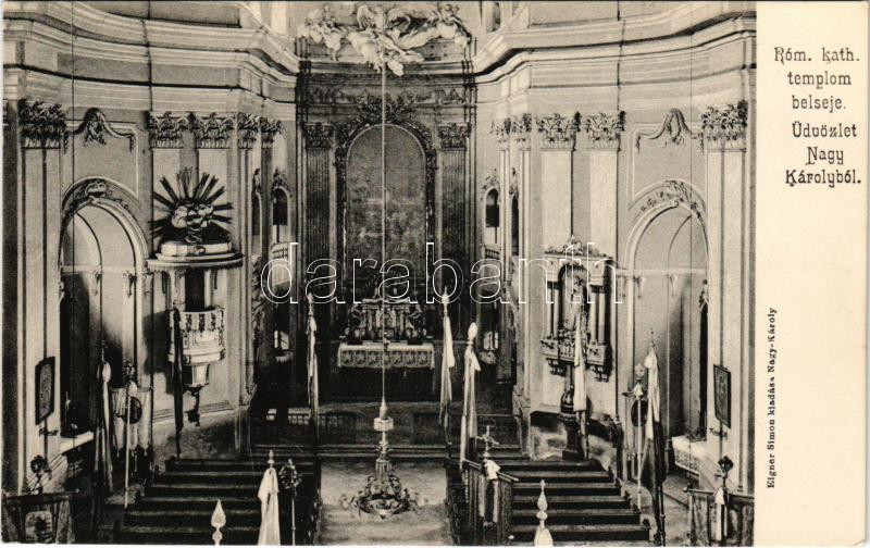 Nagykároly, Carei; Római katolikus templom belső. Eigner Simon kiadása... https://www.darabanth.com/hu/480-Gyorsarveres/480.0/Kepeslapok/Erdely~1000006/Nagykaroly-Carei-Romai-katolikus-templom-belso-Eigner-Simon-kiadasa-church-interior~II3273476