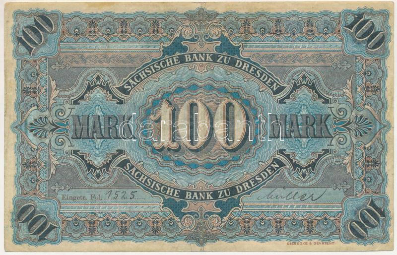 Német Birodalom / Szászország 1911. 100M "hatjegyű sorozatszám" T:F