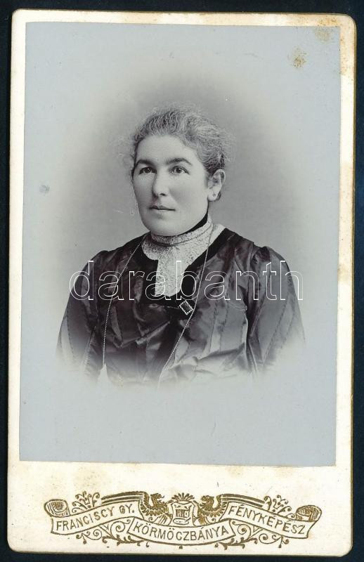 Leírás: cca 1890 Női portré, keményhátú fotó Franciscy Gyula körmöcbányai műterméből, 10,5×6,5 cm
