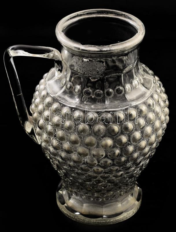 Leírás: Bütykös üveg kancsó, antik, kis lepattanásokkal a száján m: 25 cm