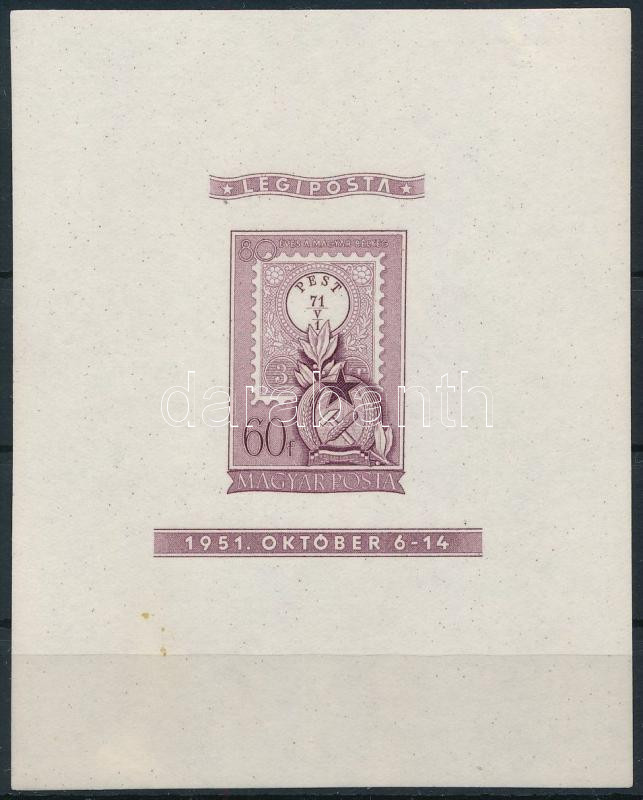 1951 Vágott Lila blokk (450.000) (előoldali foltok alul / spots on fro...