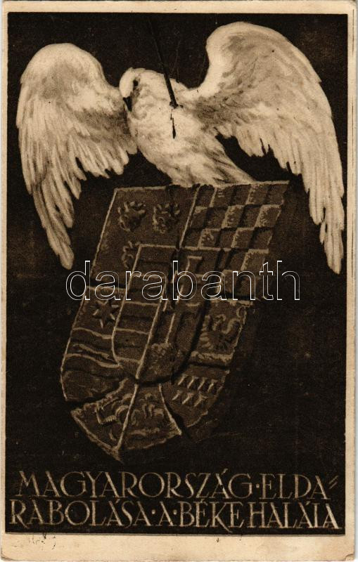 Magyarország eldarabolása a béke halála. Kiadja a "Szózat" Magyarország Területi Épségének Védelmi Ligája napilapja / Hungarian irredenta propaganda, Hungarian coat of arms, Trianon s: Tábor János, Dankó Ödön (r)