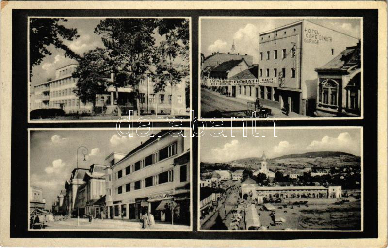 Leírás: 1939 Beregszász, Beregovo, Berehove; mozaiklap, Donáth kávéház és étterem, kerti vendéglő. Desider Schwartz kiadása / multi-view postcard with Hotel Cafe Garage Donath (EK)