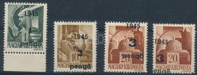 Leírás: Nagyvárad I. 1945 4 db bélyeg elcsúszott felülnyomással, Bodor vizsgálójellel