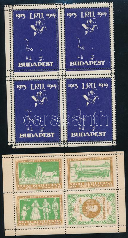Leírás: 1914-1925 IPU 4-es tömb + Jókai kiállítás zöld/barna emlékív
