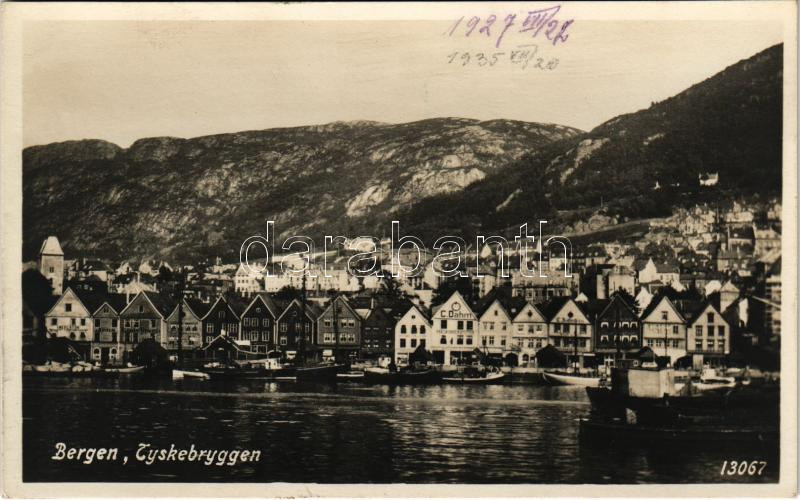 Leírás: Bergen, Tyskebryggen. C. Dham Maskinrekvisiter, Jens Ludvjgsen / general view